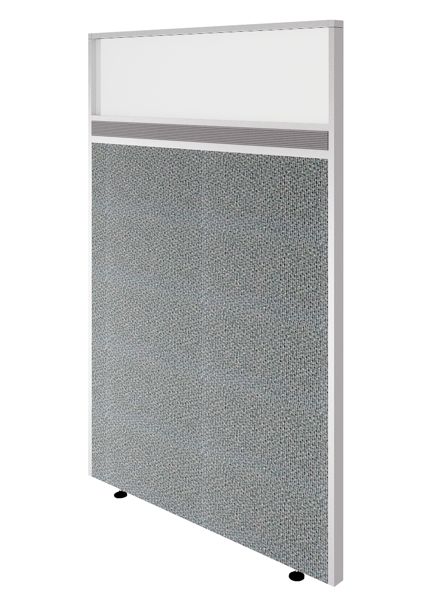 A combination of fabric and glass panels, offering a balance of privacy and visibility to create a collaborative yet functional workspace.