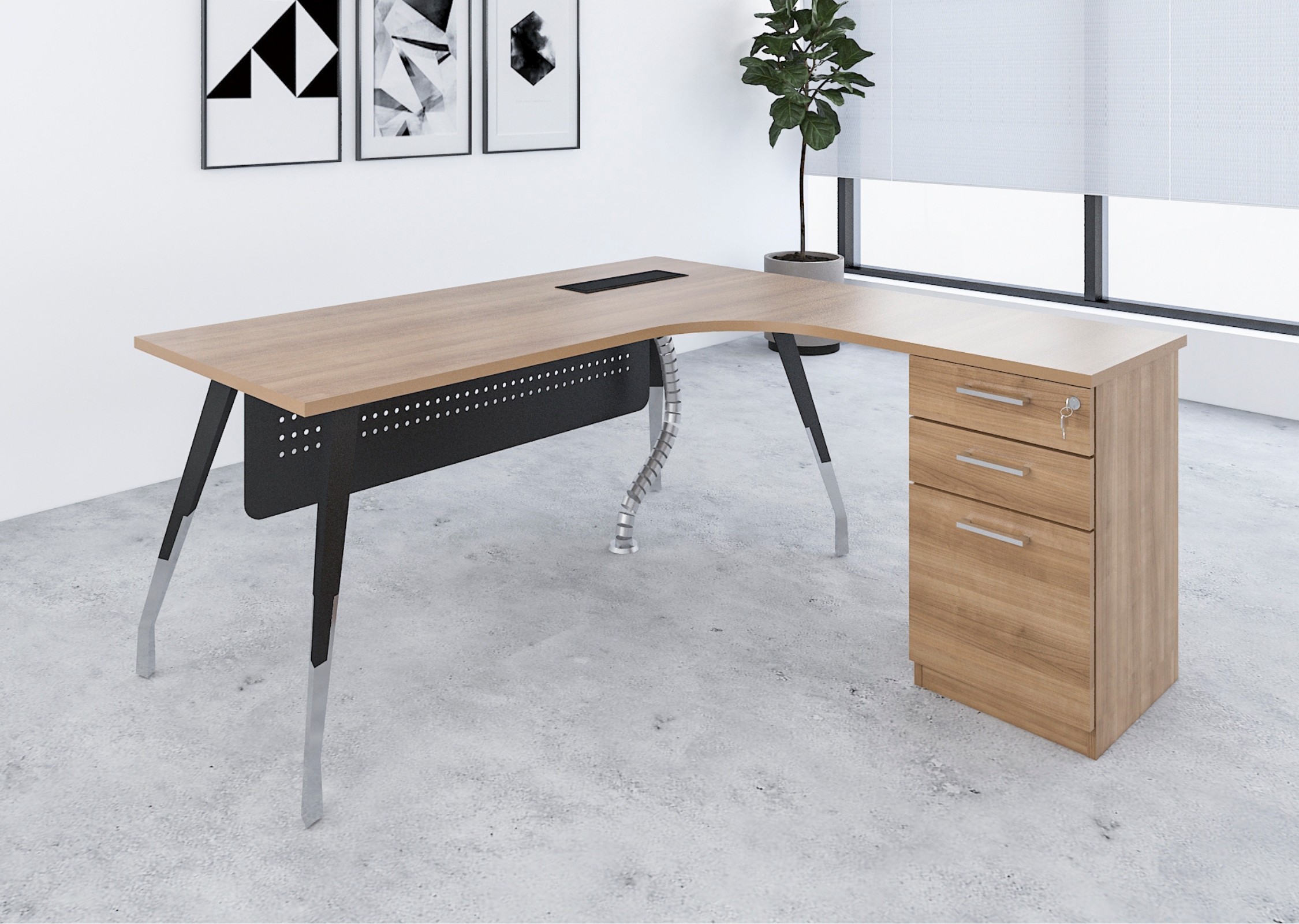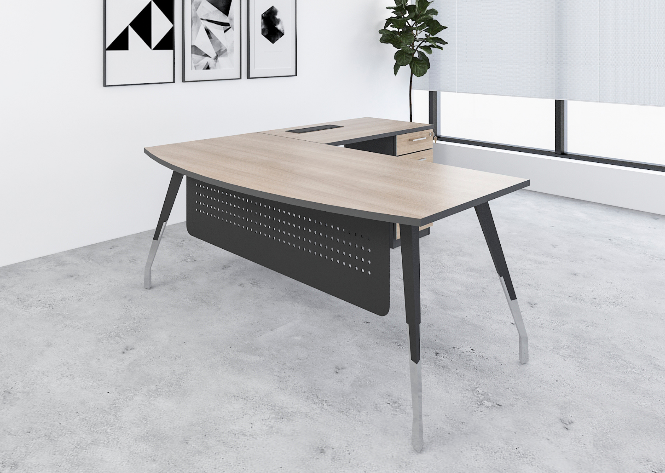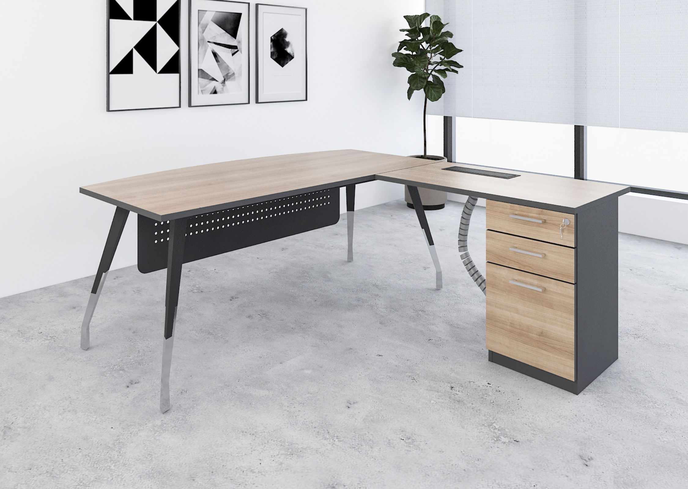 A premium manager desk equipped with a combination cabinet for ample storage, offering a sophisticated and practical solution for executives who need both style and functionality.