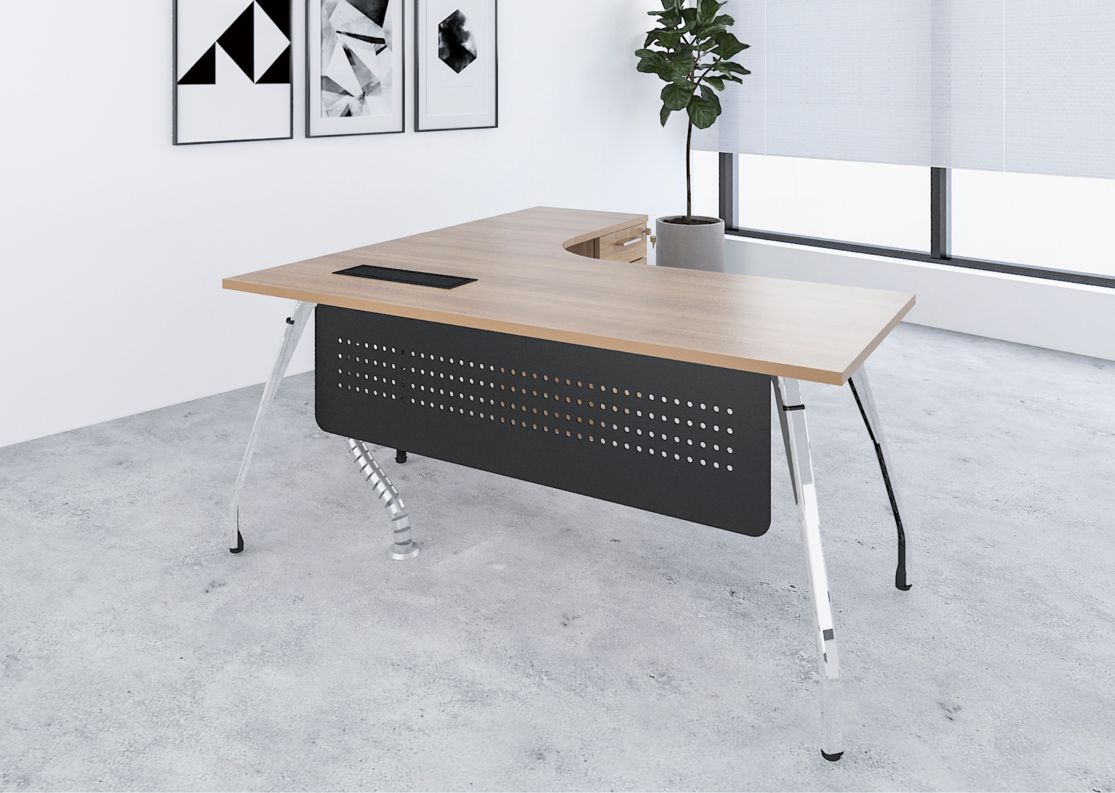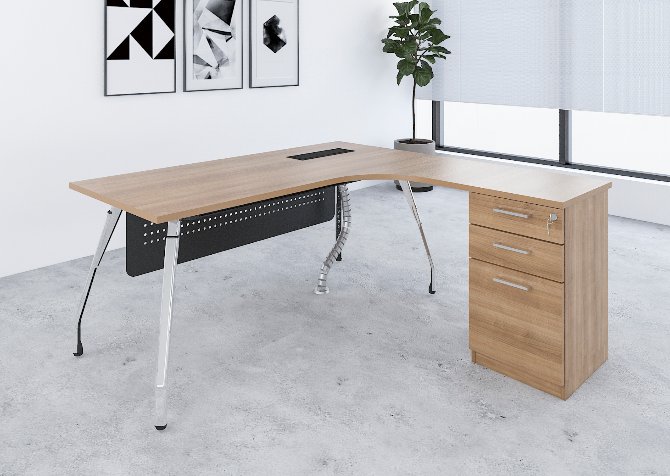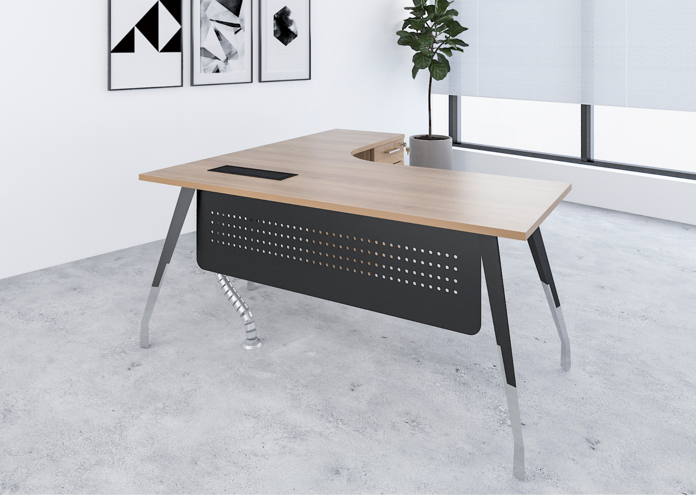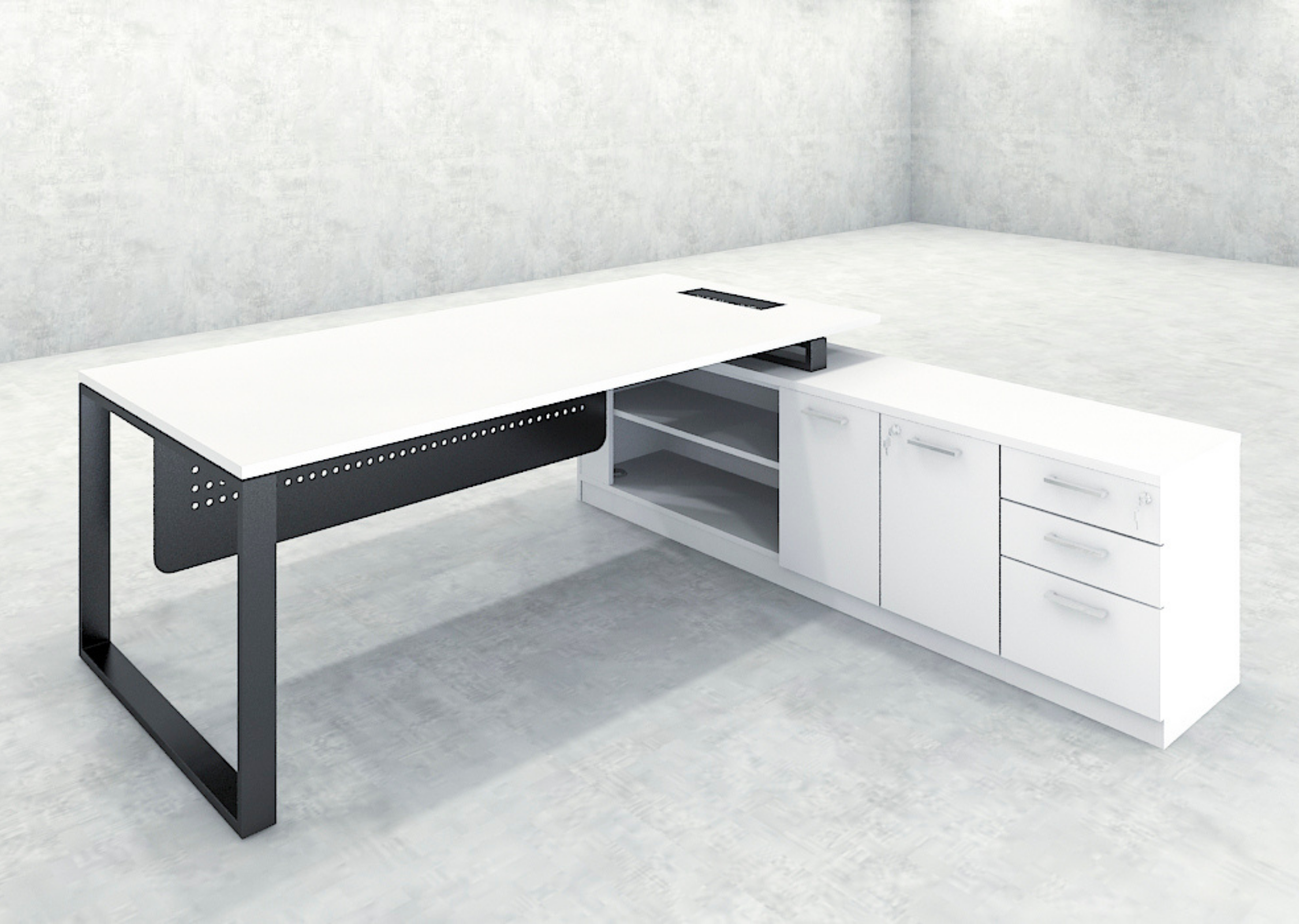 A premium manager desk equipped with a combination cabinet for ample storage, offering a sophisticated and practical solution for executives who need both style and functionality.