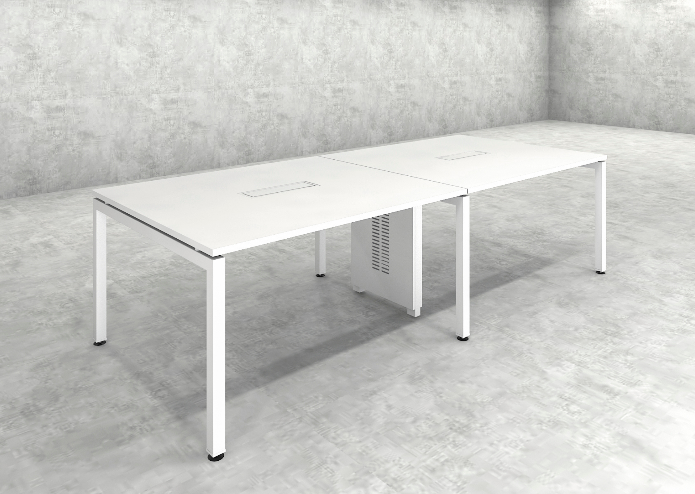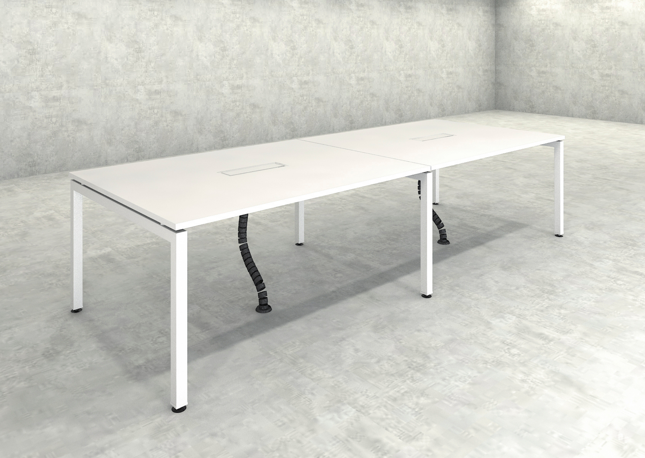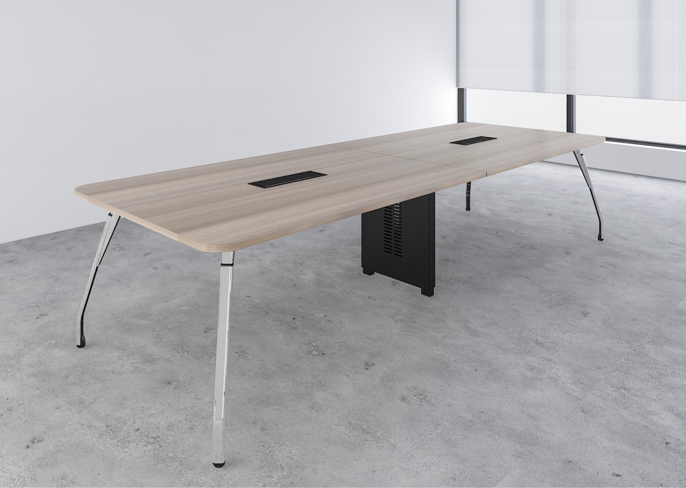 A versatile table configuration that can be arranged to suit different meeting sizes, providing flexibility for collaborative discussions, brainstorming sessions, and team gatherings.