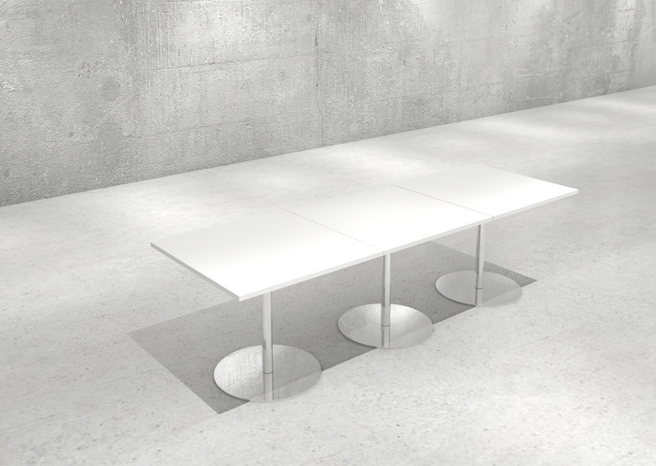 A compact and practical table designed for small group discussions, providing a balanced and professional meeting space.
