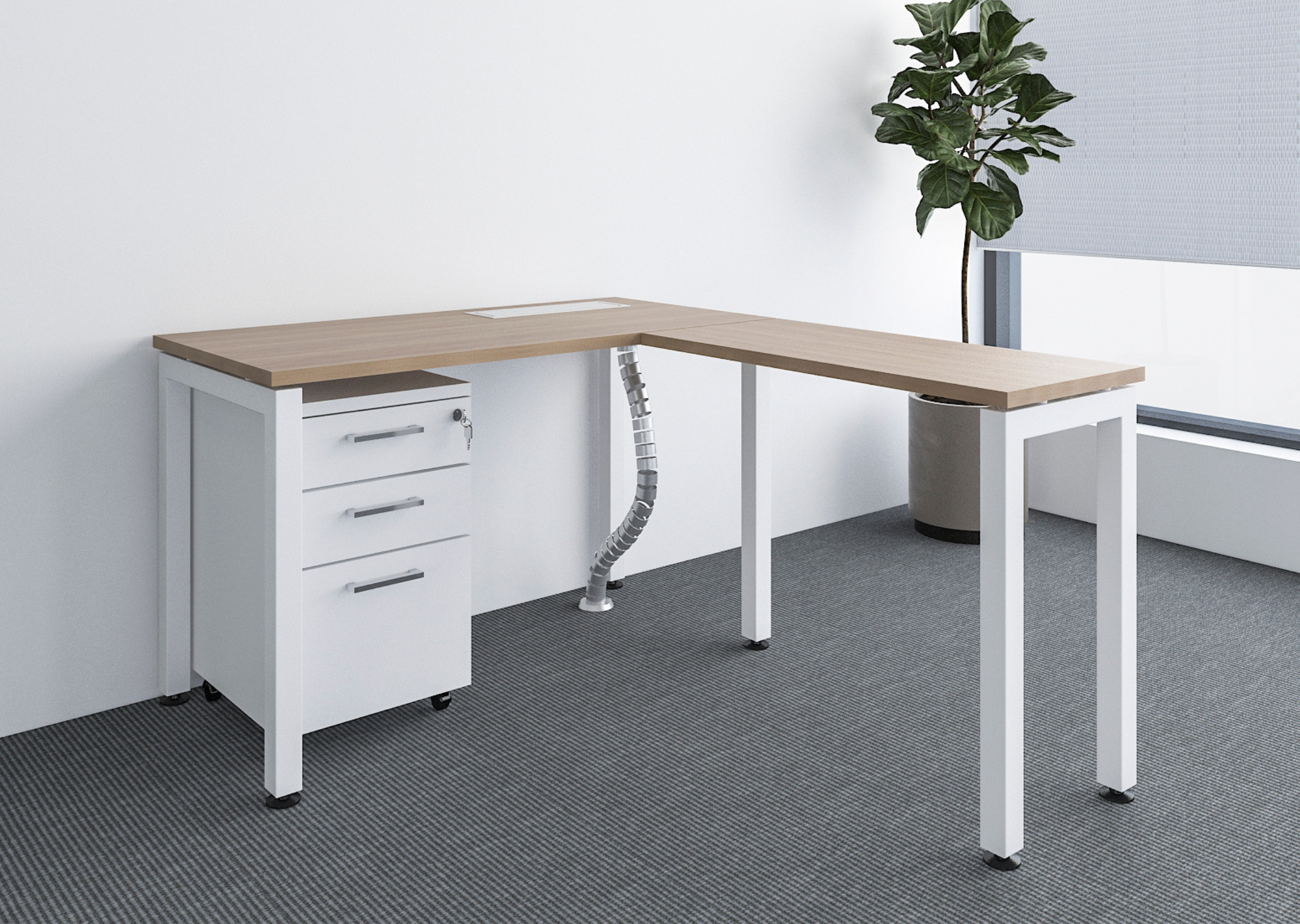 A spacious workstation with an extended surface, providing extra room for multitasking, storage, or additional equipment. Ideal for professionals who require more workspace.